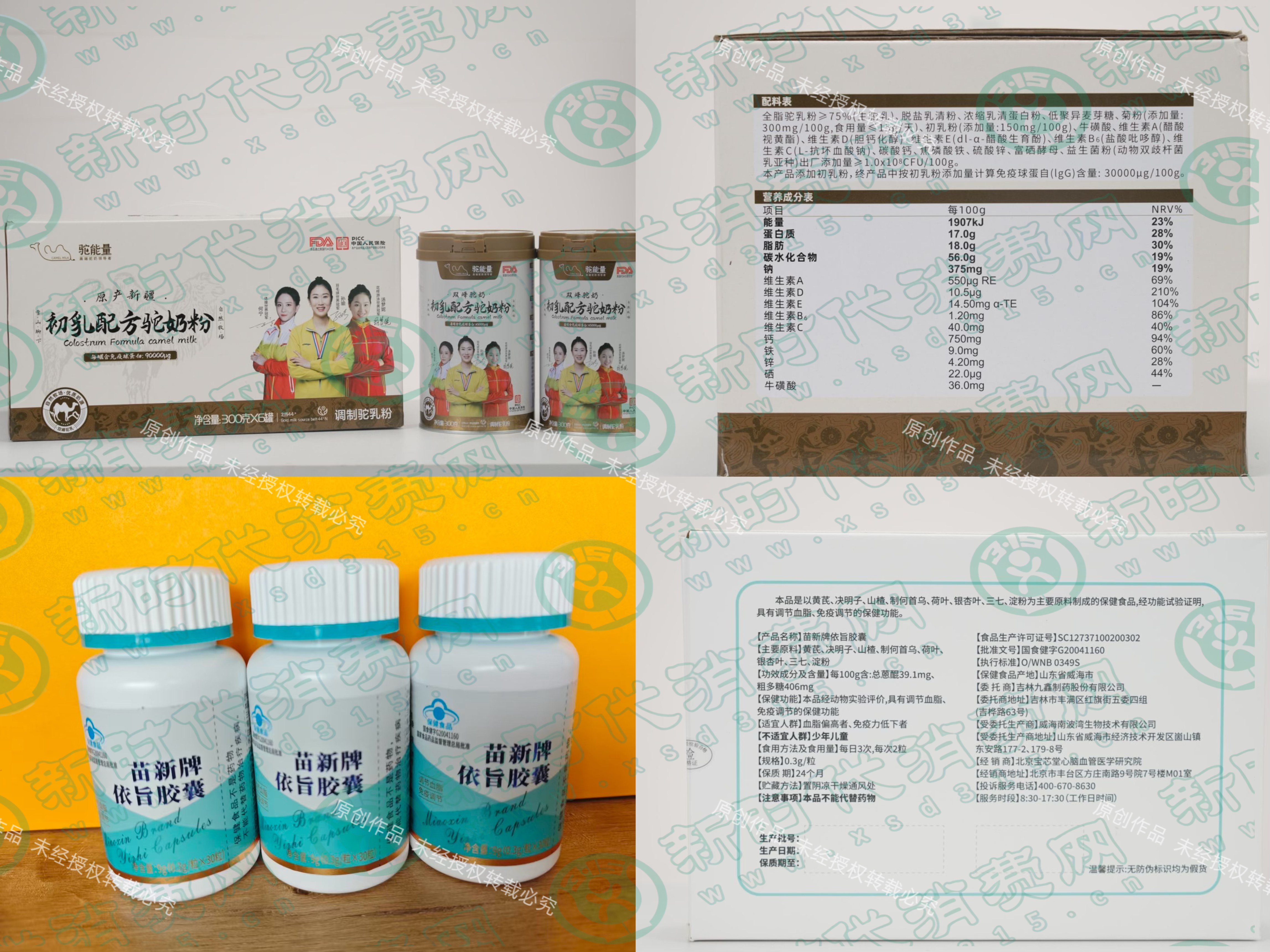 与此同时,被搭售或捆绑出现的“苗新牌依旨胶囊”为普通保健品,“初乳配方驼奶粉”为普通食品。这些产品虽然包装精美,名字听起来高大上,但始终掩盖不了食品的本质,主讲人通过制造健康焦虑、专业“医托”,营造产品稀缺、效果显著,营销却又以“治疗”“逆转”“延寿”等高强度暗示推进交易,风险便会被迅速放大。