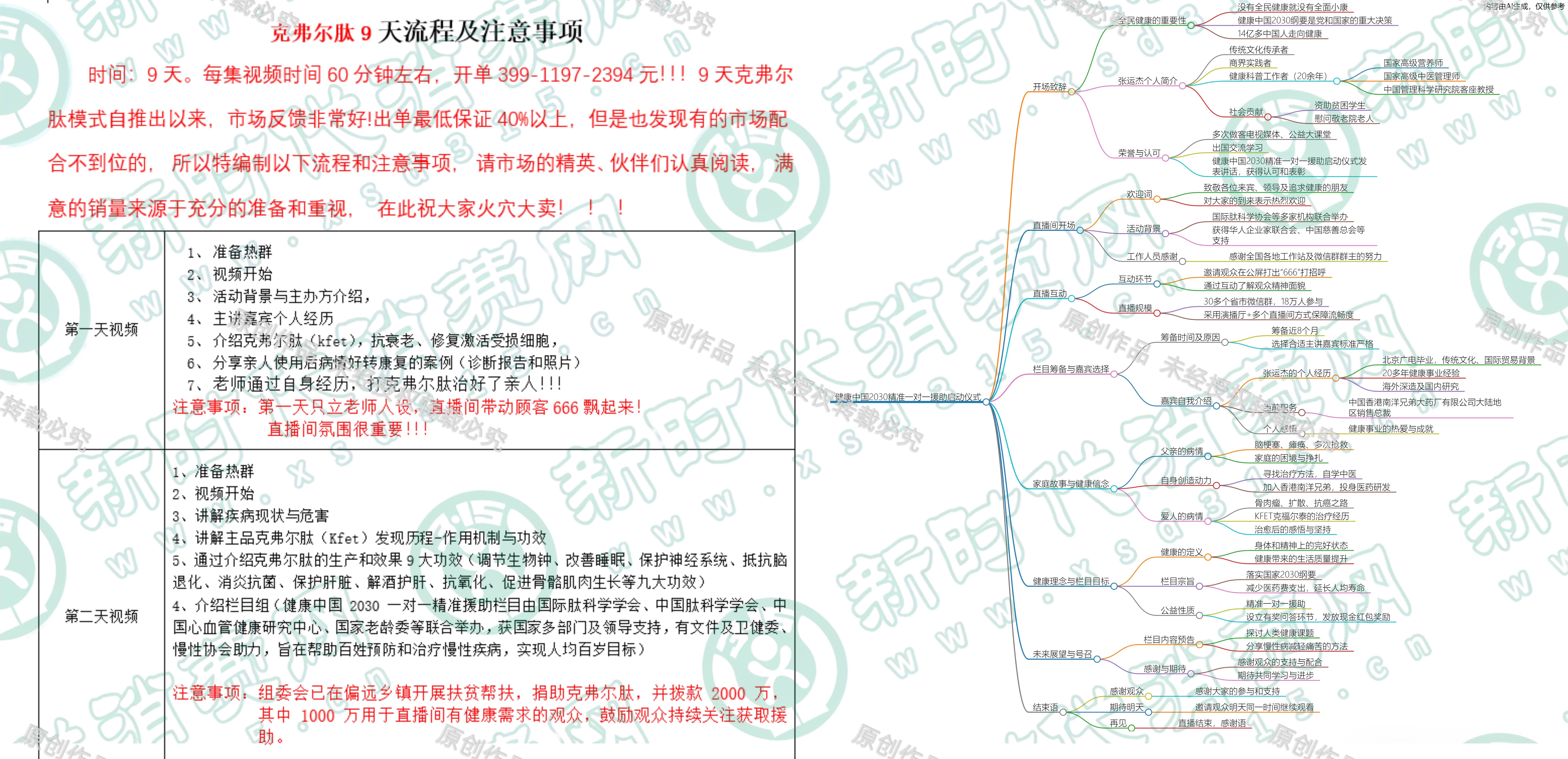 调查人员取证后发现,这个私域直播间并非随机吆喝,而是被设计为“流程化转化”。竟把成交目标直接设定为“9天模式”,即九天就是一个周期,前期铺垫,后期直接卖活。 这意味着它更接近一套营销工程:通过连续课程维持黏性,通过群聊管理与话术节奏控制购买时点,再以“名额”“补贴”“返钱”等刺激点推动付款。