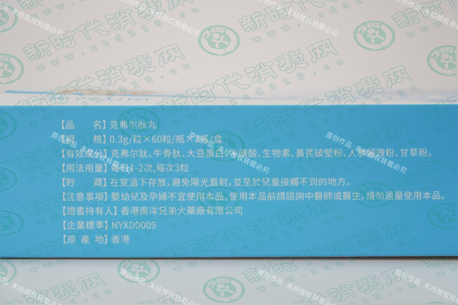 根据消费者提供的实物信息,“克弗尔肽丸”包装标注企业标准为:NYXD0009。其名称为南洋兄弟克弗尔肽丸,物码中心展示条码“6978799570018”注册产品名称:克弗尔肽丸,生产许可证编号SC10661042310149,生产厂家为仁康药业集团(咸阳)有限公司,产品分类为维生素、矿物质、营养补充剂组合装,该产品既不是药品也不是保健食品,只是普通食品。早在2017年原国家食药监总局局长毕井泉就曾指出,所有食品、保健食品的广告、宣传册、音频视频、会议讲座,不得偏离标签、说明书标示的内容,严禁涉及疾病预防、治疗功能。