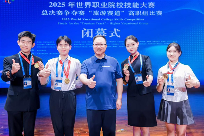 同时,学校以“技能筑基”为核心,深度推进赛教融合创新实践。在2025年世界职业院校技能大赛总决赛中,该校参赛团队紧扣“传承中原文脉・绽放时代华彩”主题,将中原地区深厚的历史文化深度融入作品创作。从核心技能的精湛展示,到服务流程的细致优化;从非遗技艺的活态传承,到现代科技的创新应用;从地域文化的深入挖掘,到文旅融合的生动表达,每个环节都以“文旅匠心”为笔,既勾勒出传统技艺的当代生命力,更通过“赛教融合”的实践路径,展现职业教育对地域文化传承与技能人才培养的双向赋能。
