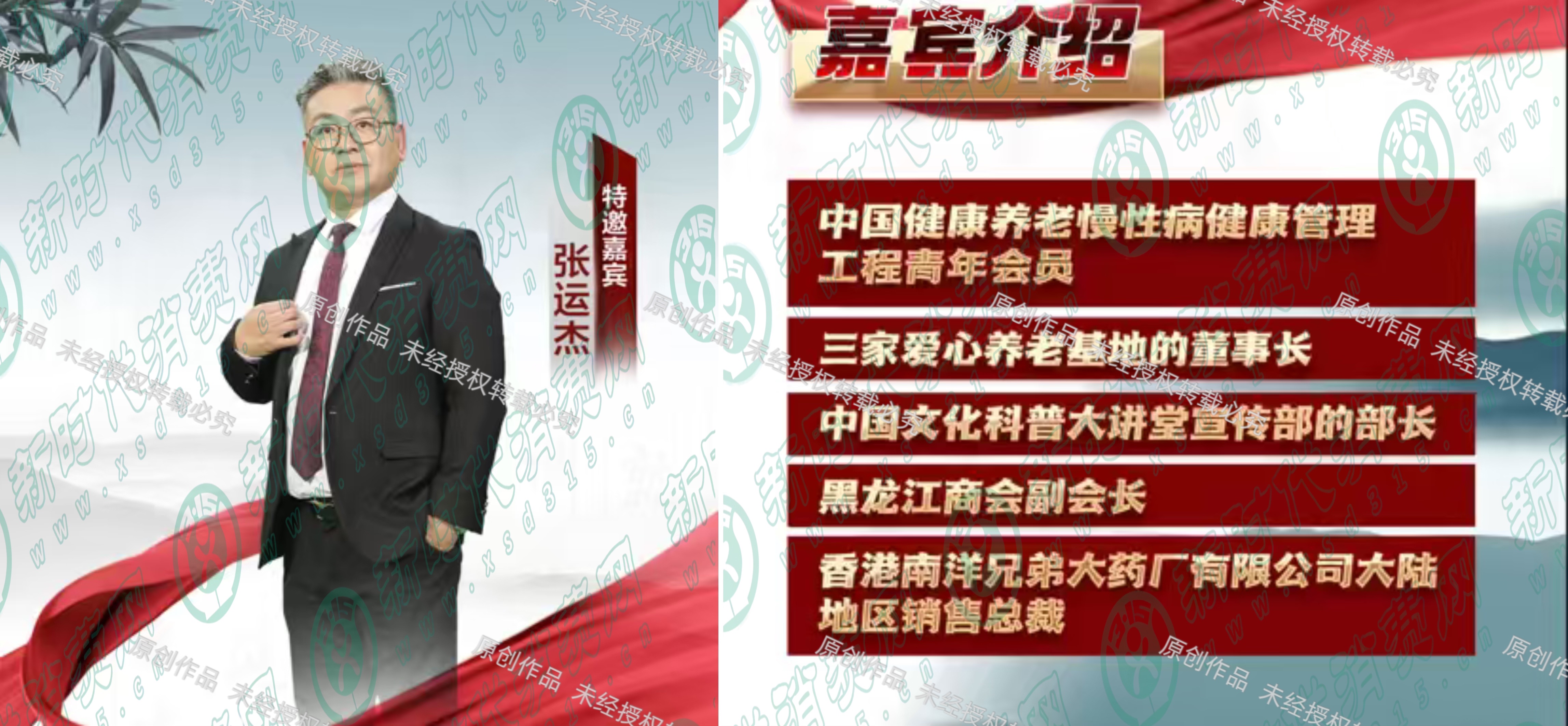 在每期视频节目中,开头都有一位自称“张运杰”的主播出现,视频中标注其为中国健康养老慢性病健康管理工程青年会员、中国文化科普大讲堂宣传部部长等多项头衔与身份,但在相关政务及企业信息平台无法核实,其声称的三家爱心养老基地董事长、黑龙江商会副会长等身份亦无从考证,黑龙江商会的相关信息更是查无实据。